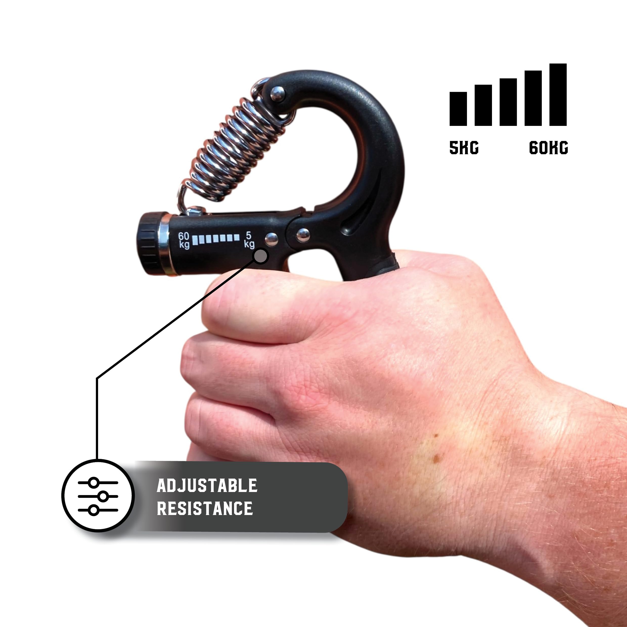 - Adjustable Resistance from 5kg to 60kg – Easily customize your grip training intensity with a smooth resistance dial, perfect for beginners and advanced users alike. Ideal for progressive strength building and rehabilitation.