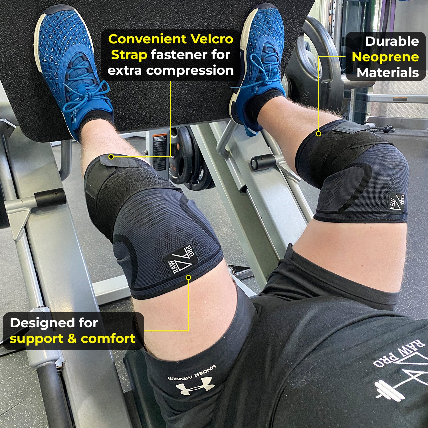 - Enhance your daily activities and workout experience with the DanRaw Pro Knee Compression Sleeve featuring a convenient Velcro strap fastener. Designed for ultimate support and comfort, this versatile knee sleeve is crafted with precision to boost your performance during weightlifting, CrossFit, and squats, as well as support you in various everyday situations.